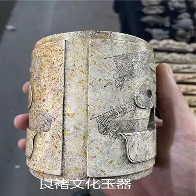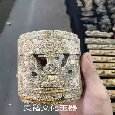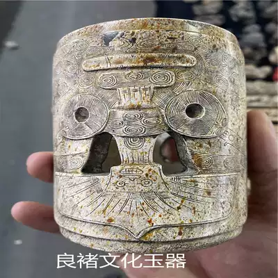 Ancient jade ritual jade brown imitation Liangzhu jade Brown imitation old and new stone pendant pendant decoration human face round jade brown