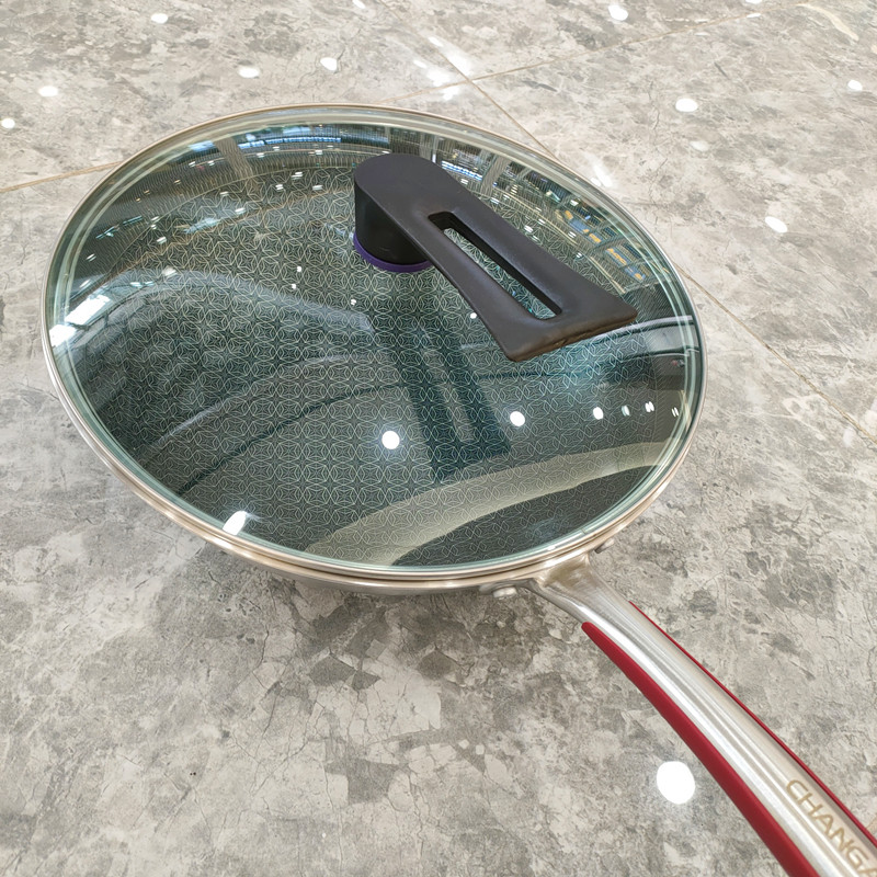 Stainless steel inlaid glass lid