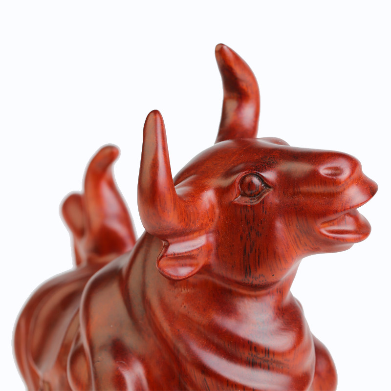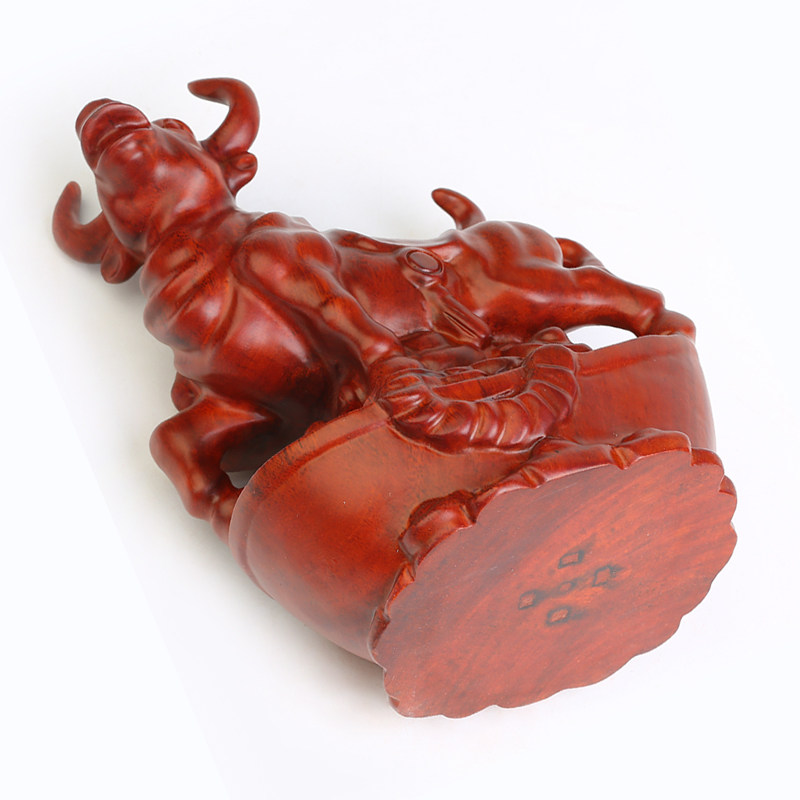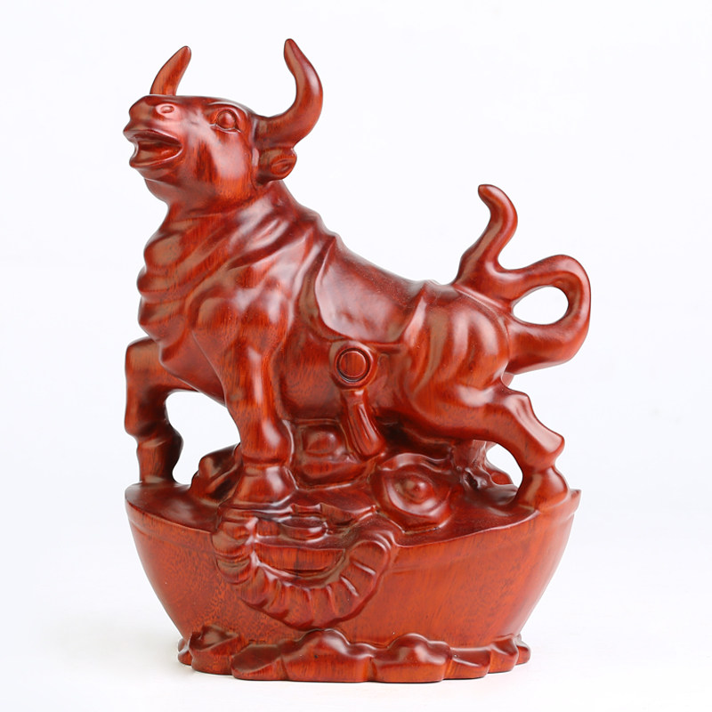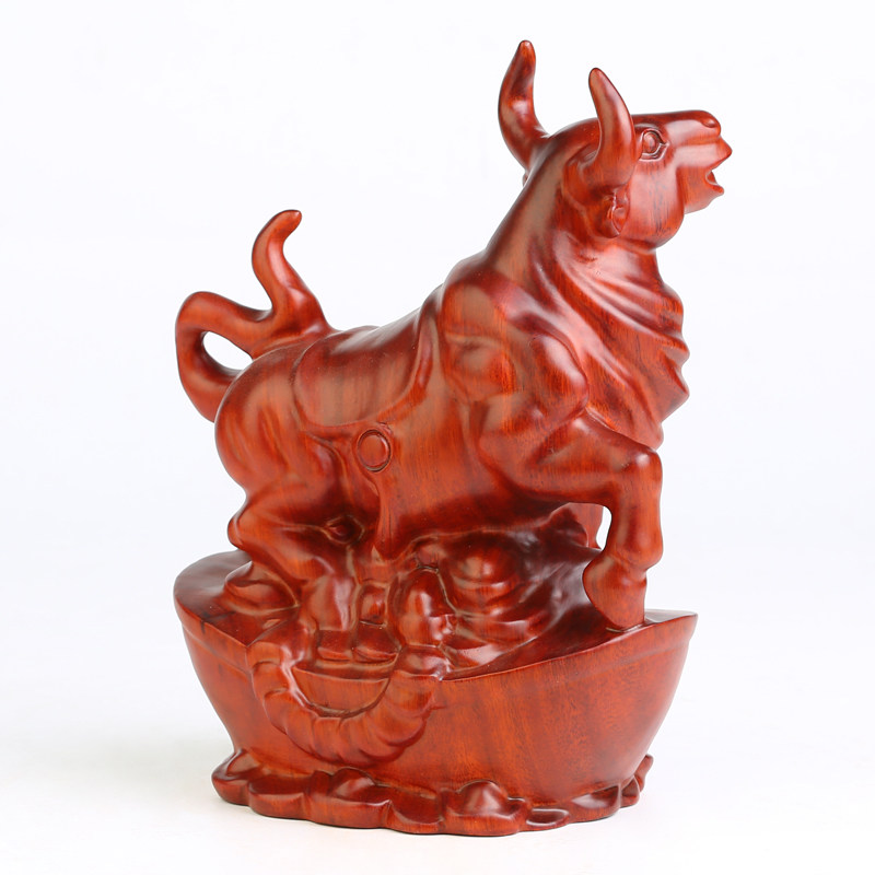Wood carving cattle ornaments mahogany carving handicrafts copper coins Yuanbao cattle 12 zodiac cattle solid wood pioneer cattle