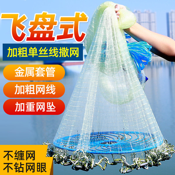Frisbee-type casting net Large Frisbee-type hand-throwing net core-wrapped steel wire weighted disc hand-casting net fishing net spinning net casting fishing net
