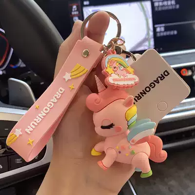 Genuine unicorn keychain cute exquisite car key female backpack pendant cartoon girl heart hanging ornaments