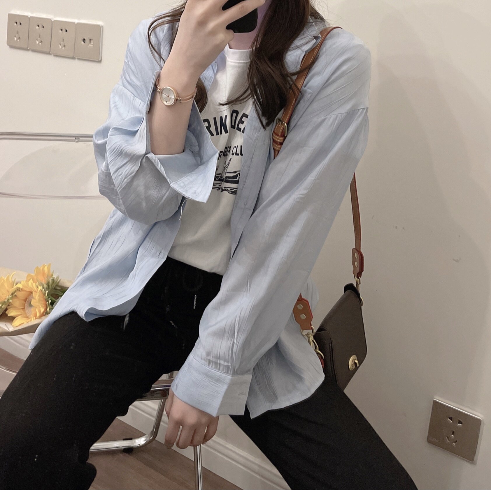 missqiuqiuqiu Autumn Home Old American printed round collar loose letters summer short sleeve T-shirts
