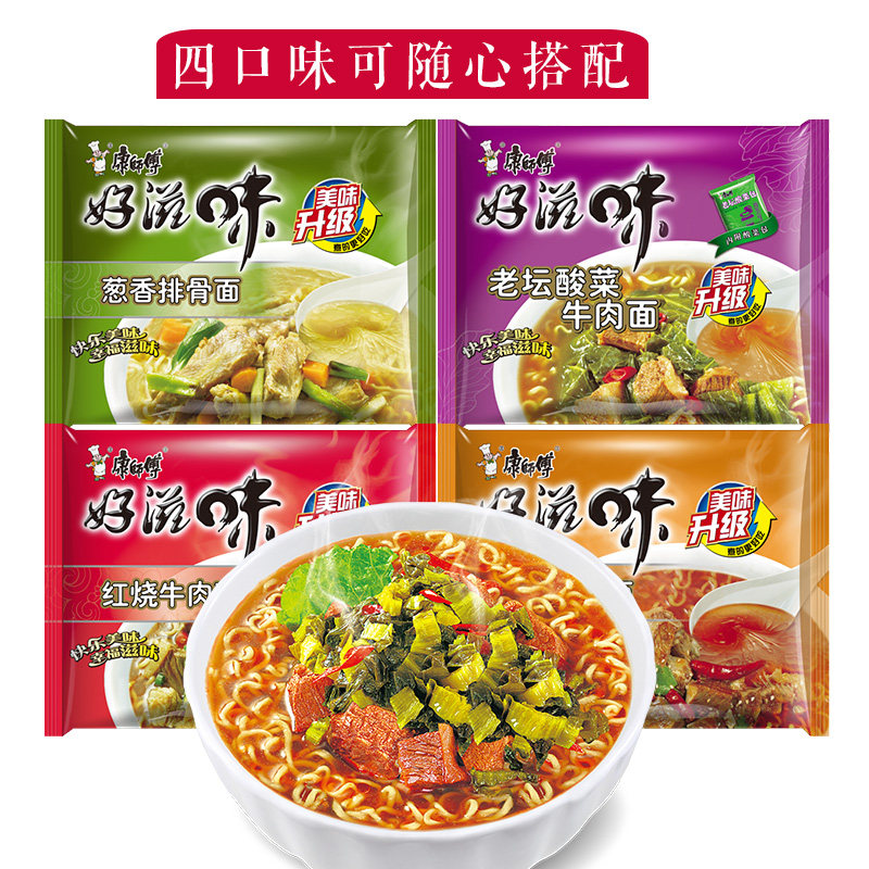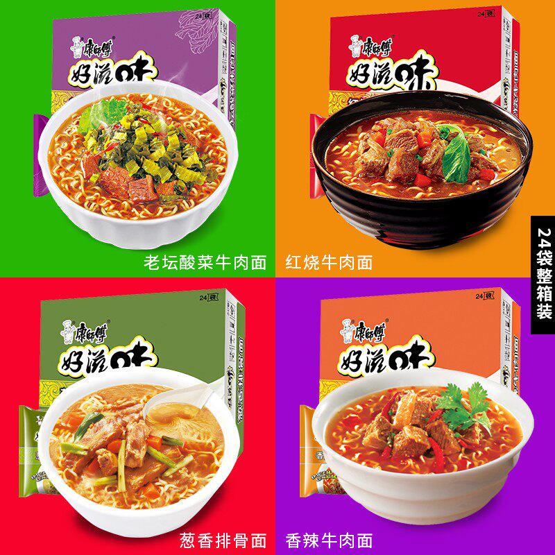 (10 large bag) Four-flavoured composition (10 large bag) Red Burnt Beef Noodle (10 large bag) Spicy Beef Noodle (10 large bag) Onion Cilantro Noodle (10 large bag) Old altar Acid Vegetable Bull