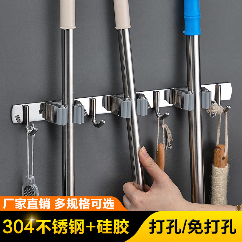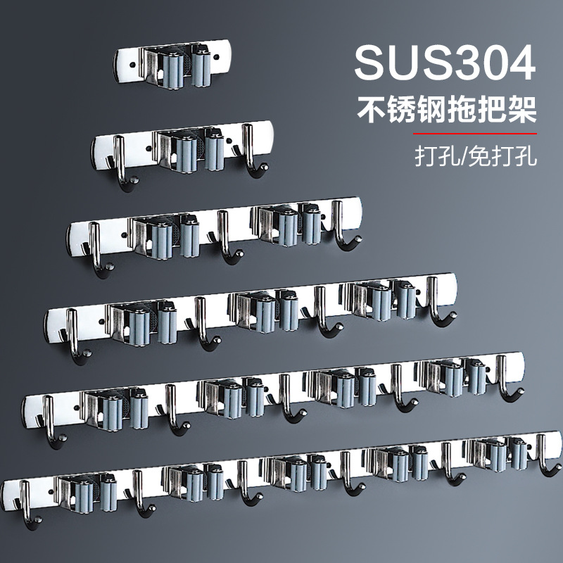 Makeup Room Mop Hook Theorizer Powerful Toilet Release Mop Rack Home Free Perforated Mop Clip Wall-mounted