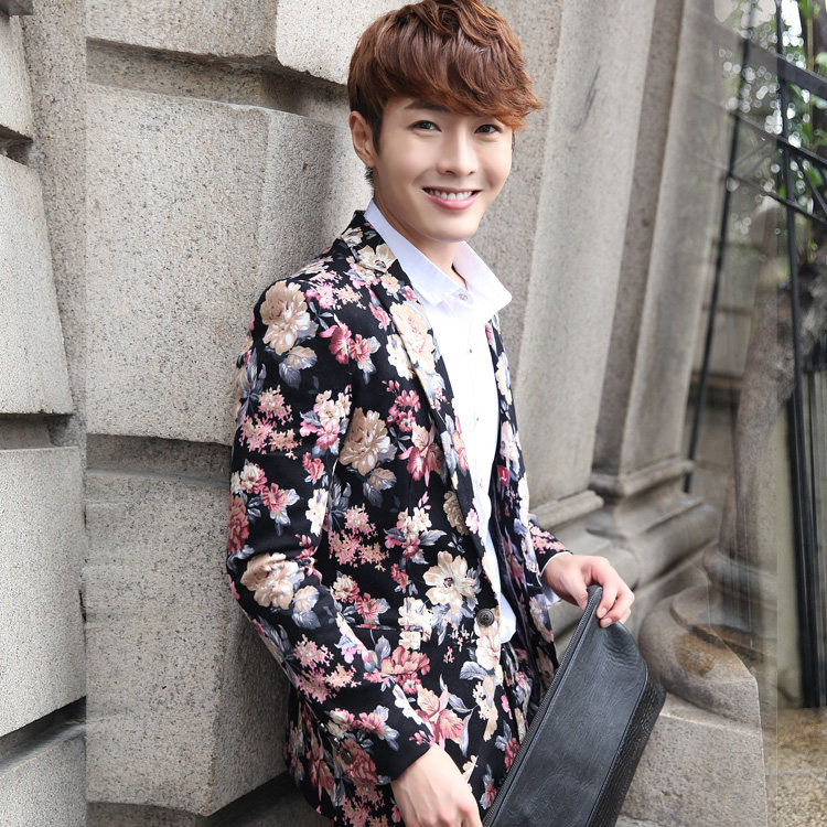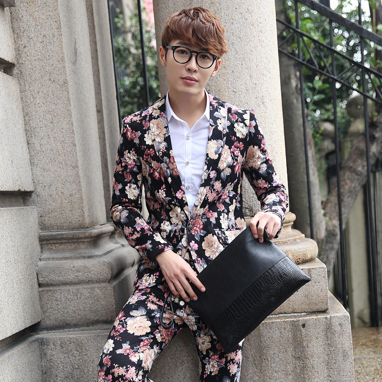 Plus size Korean version of the star with the same style of men's broken flower color small Western decoration body nightclub suit suit singer costumes