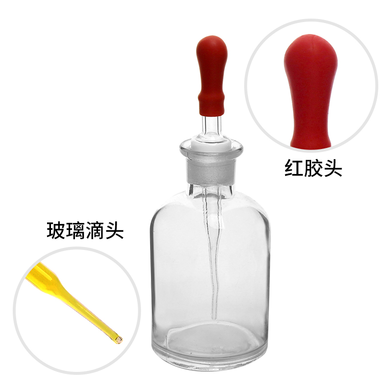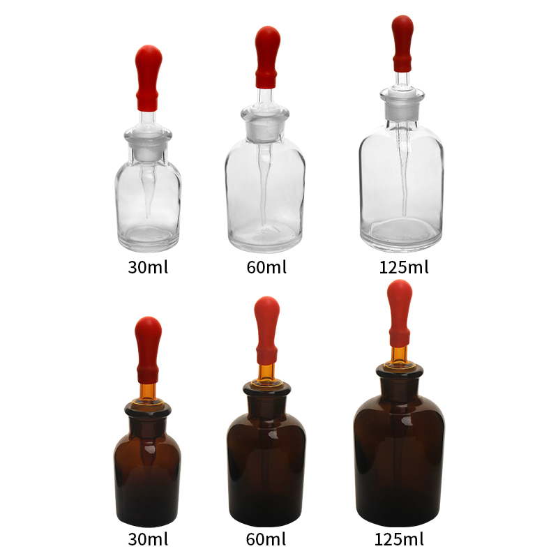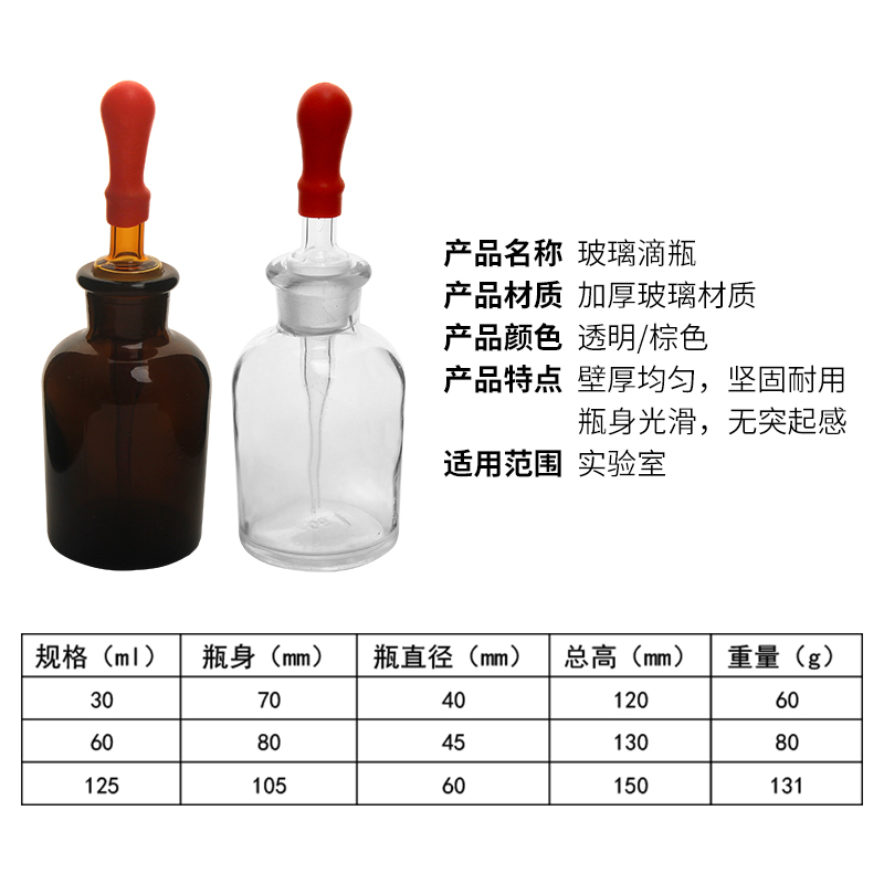Glass drop bottle 30ml60ml125ml250ml white drop bottle brown drop bottle tea drop bottle with dropper red leather head complete chemical laboratory with dropper frosted reagent bottle