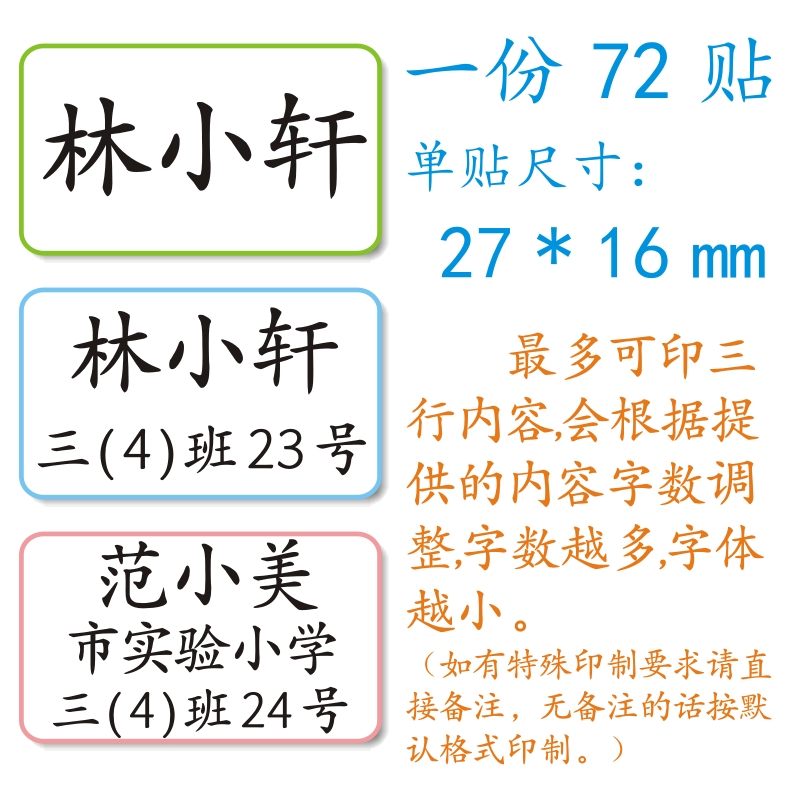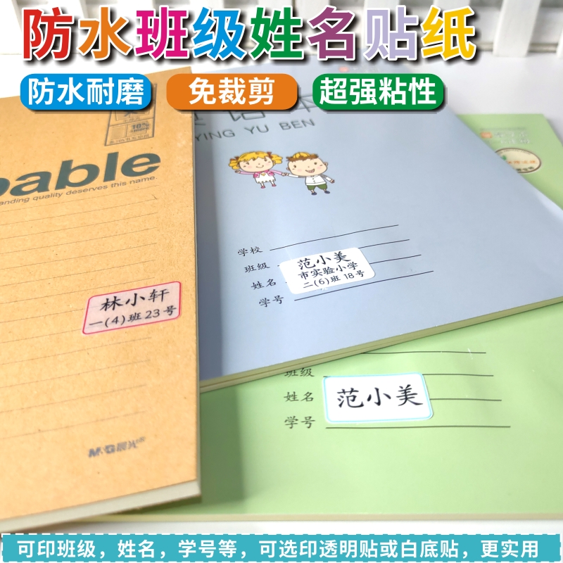 Primary school junior high school class name sticker waterproof name sticker with student number children's book self-adhesive self-adhesive custom