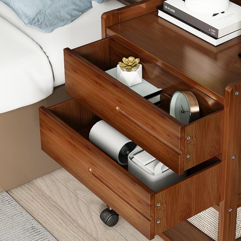 Mobile bed cabinet Modern light luxury bamboo double soy sauce Minimalist solid wood small simple bed side bedroom shelf storage cabinet
