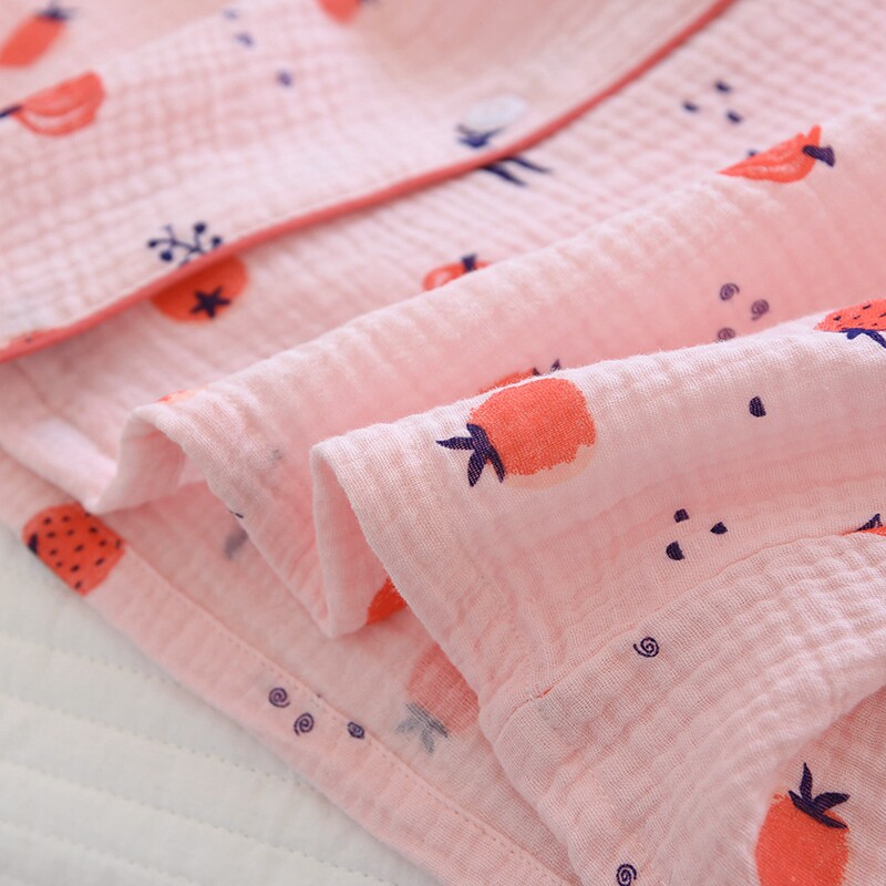 Spring Autumn Pyjamas Woman Pure Cotton Double Layer Gauze Crepe Cloth Summer Thinly Cute Full Cotton Long Sleeve Long Pants Home Suit Suit
