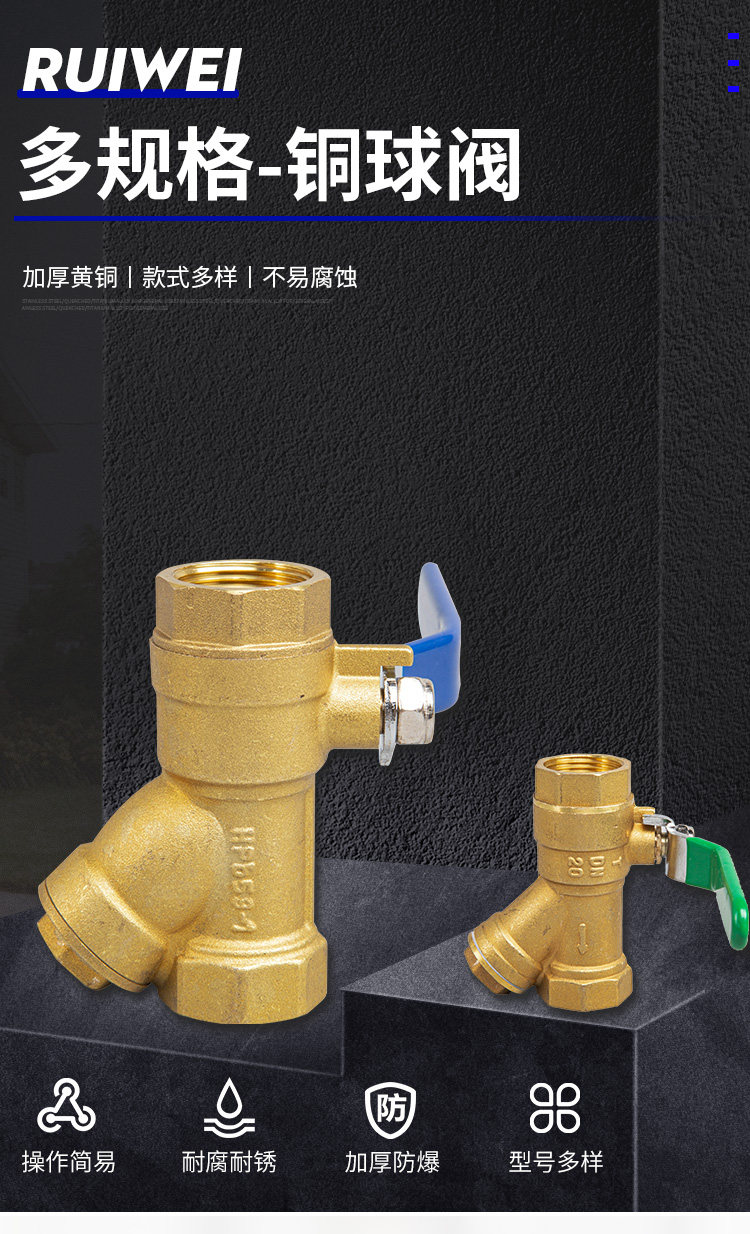 Y-type filter ball valve copper ball valve 4 minutes 6 minutes 1 inch DN15202532 ball valve with filter integrated filter