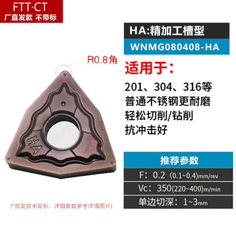 CNC blade Stainless steel special WNMG080404 08-MA machine clamp turning knife grain Round peach shaped bit
