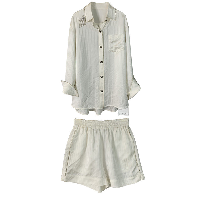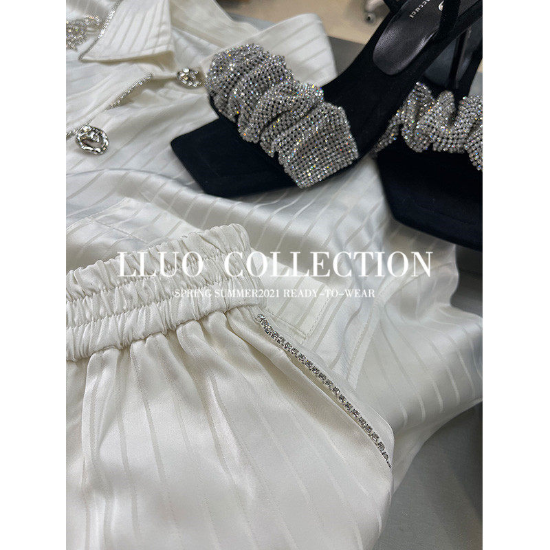 Clearance pick-up and leak heavy self-retained 100のtencel striped suit ladies coat top high waist short pants