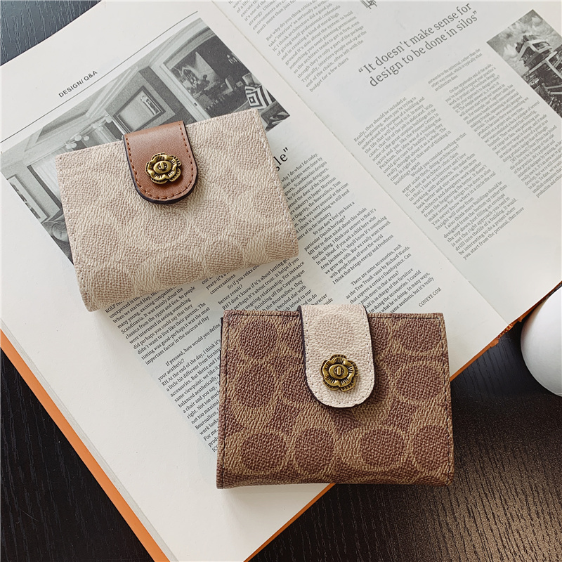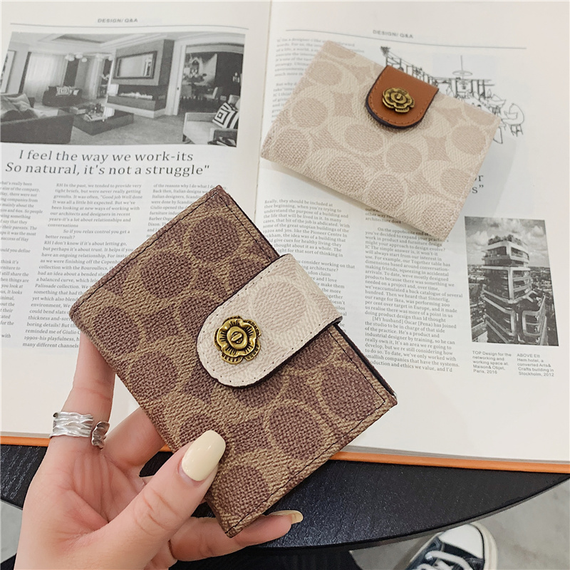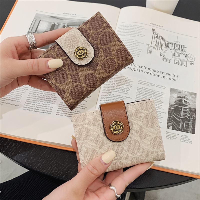 Korean Version Printed Small Card Bag Women Buckle Folding Zero Wallet Sophisticated And Upscale Multi-Position Wind Violin Style Name Sheet Clip Driving