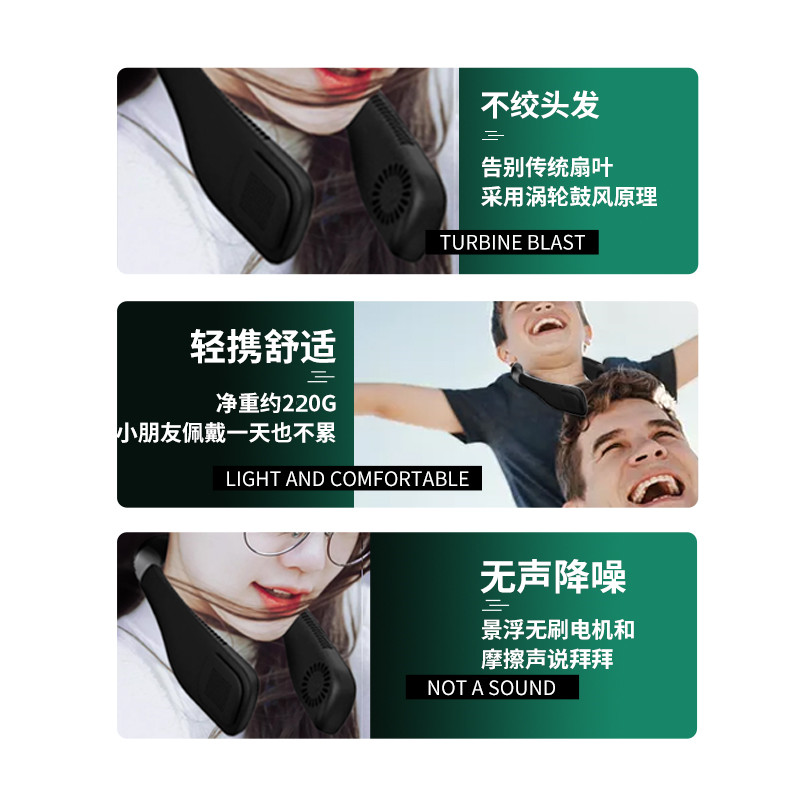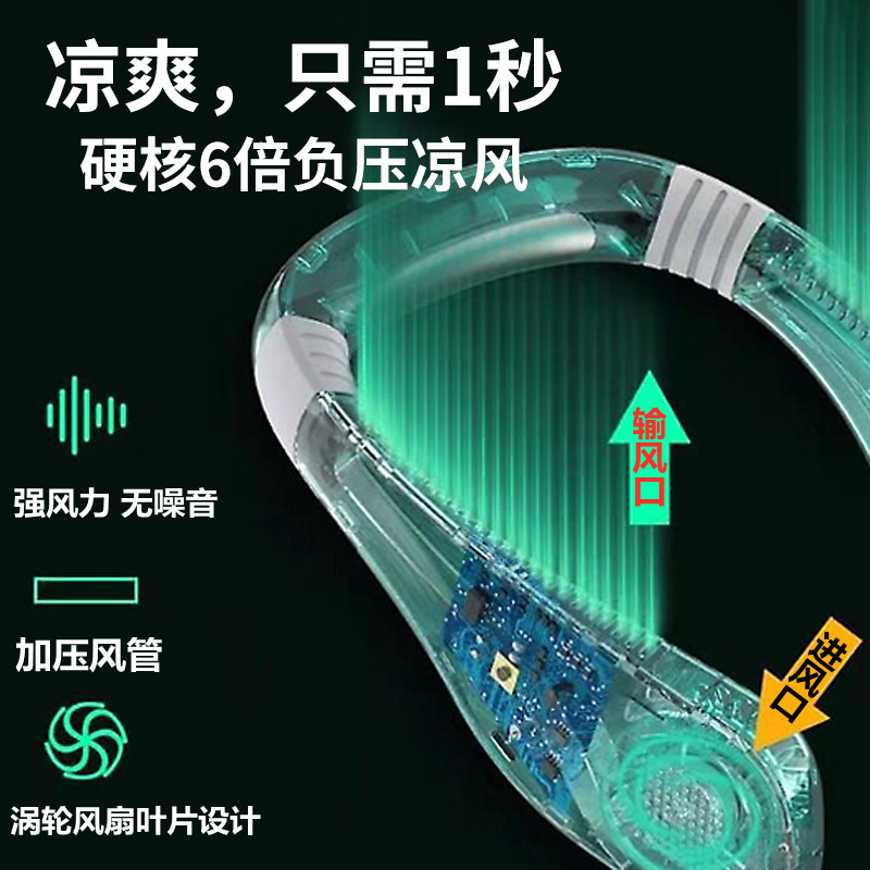 Hedor leafless neck fan small mini portable turbo lazy small fan silent neck fan usb charging students outdoor sports rapid cooling cooling large wind force