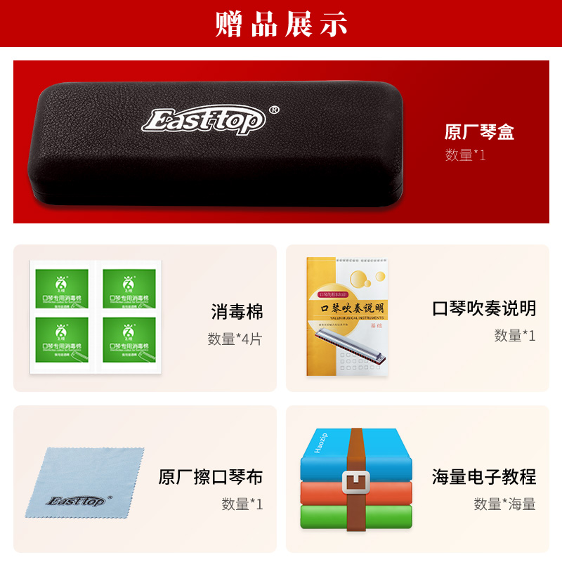 Easttop Oriental Tripod T2403 Remboyant Harmonica Senior Adult Beginner Student 24-hole Professional Self-Learning
