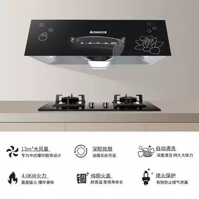 Zhigao household small suction and exhaust range hood gas stove package combination integrated top suction smoke machine set