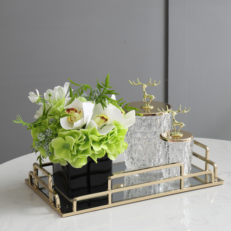 Light luxury Nordic metal glass tray household tea table rectangular tea plate with tea cup placement