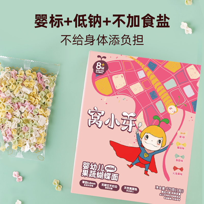 (Baby auxiliary standard) fruit and vegetable butterfly noodles * 1 box lace noodles * 1 box Rolled noodles * 1 box 1 week long noodles * 1 box 1 week modeling noodles * 1 box Fruit and vegetable butterfly noodles * 1 box 1 box of broken noodles * 1 box
