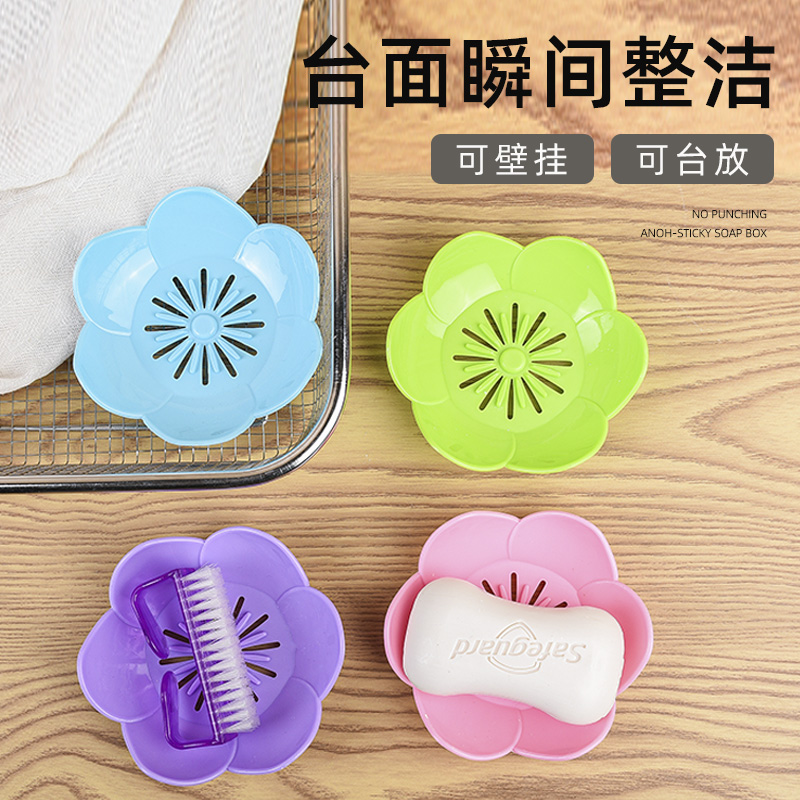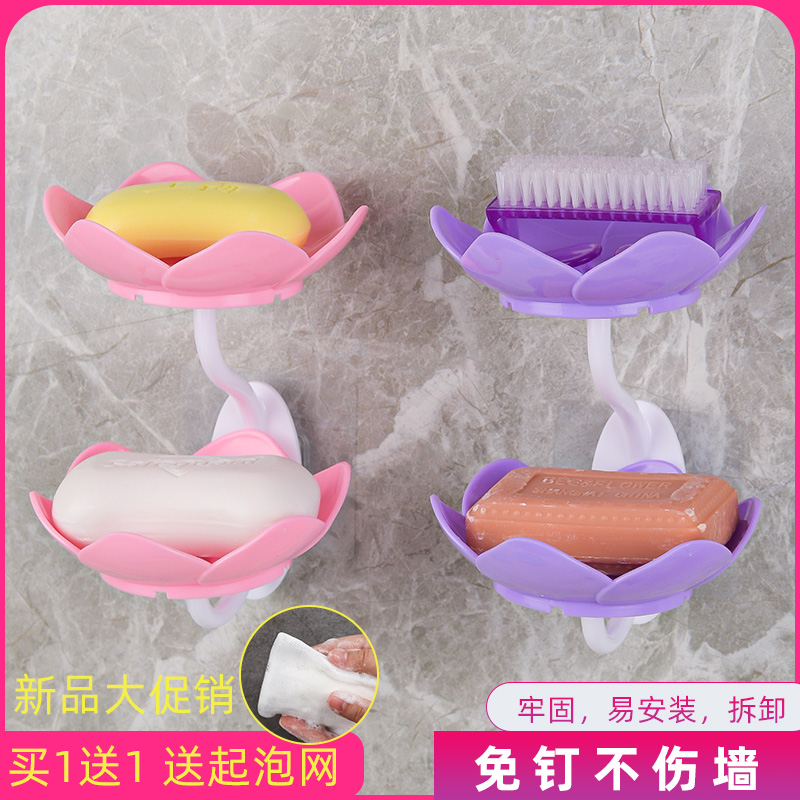 Soap box wall-mounted double lotus soap box rack creative draining non-punching washroom washroom shelf