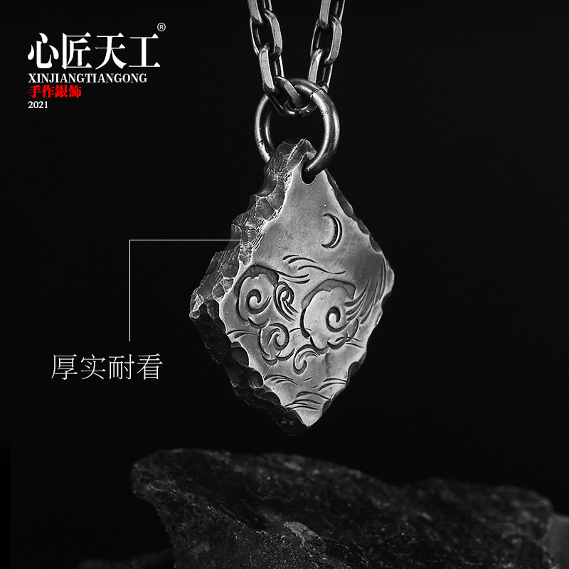 925 Sterling Silver Pendant Necklace Men's Trendy Accessories Original Design Silver Cake Pendant Small Jewelry Handmade Gift