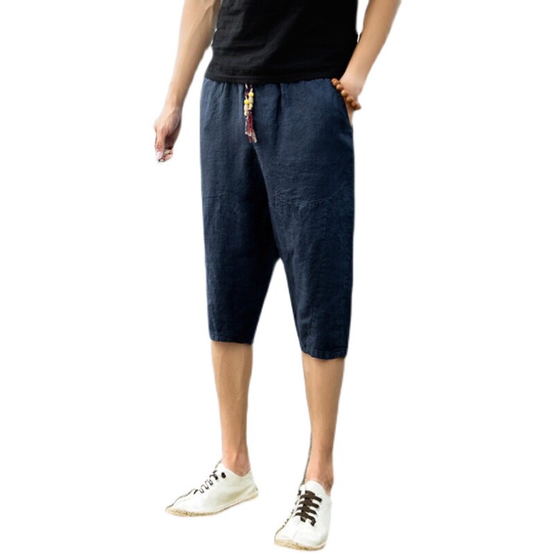 Tide brand summer linen shorts men's casual loose thin section cotton and linen capri pants beach pants men's popular Chinese style