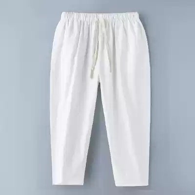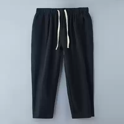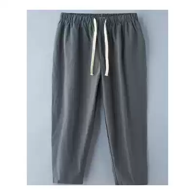 Cotton and hemp plus fat plus size pants Male fat bloomers spring and summer linen fat sweat-absorbing breathable nine-point pants pure cotton