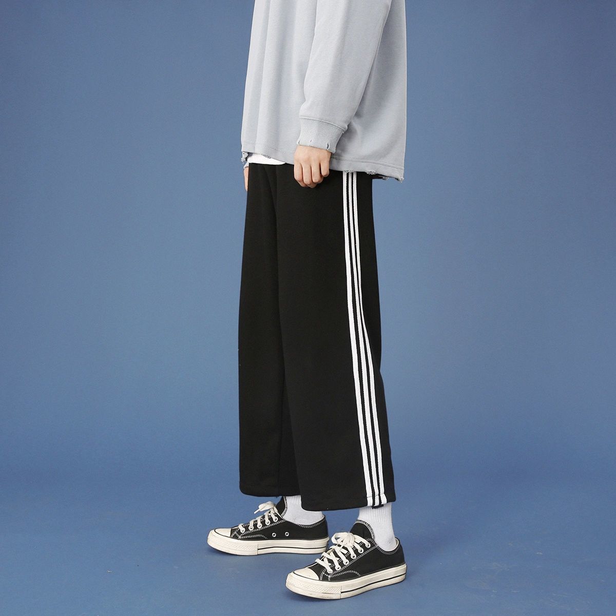 Spring Summer Harbor Wind Striped Casual 90% Pants Male Korean version 100 Hitch Loose Straight Cylinder Wide Leg Three-Bar Sports Thick Cotton Pants