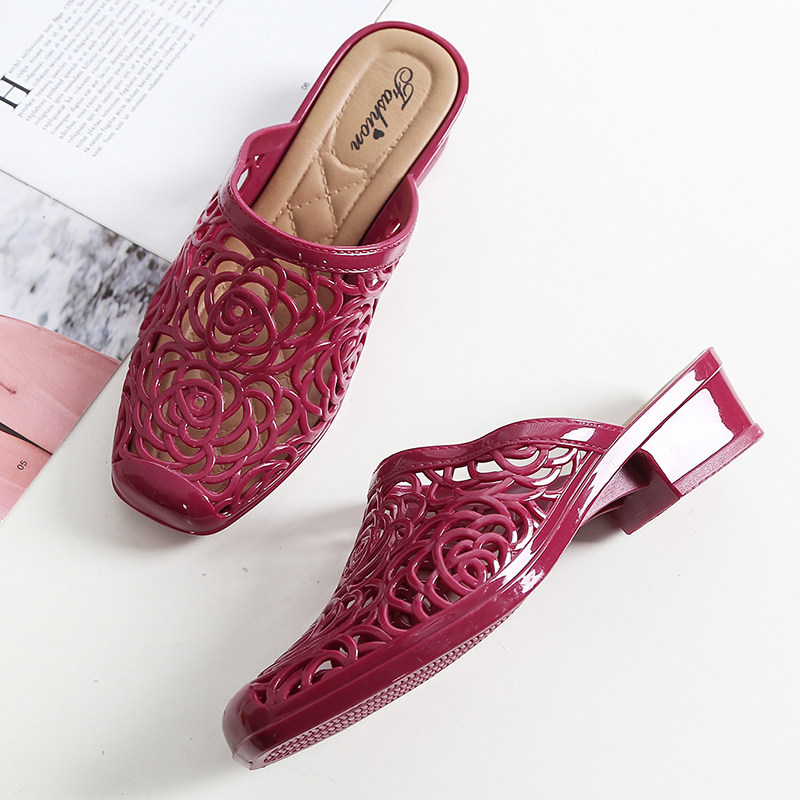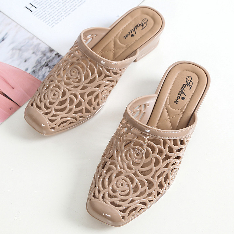 Baotou Beach Sandals and Slippers Shoes Women's Summer Fashion Network Infrared Wear Hollow Height Thick Heel Semi-slip Non-slip Versatile Slippers