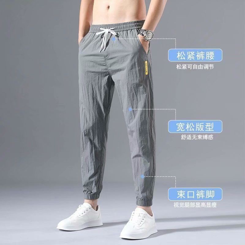 2021 ninth pants men's trend all-match loose sports pants ice silk summer thin men's overalls trousers casual pants