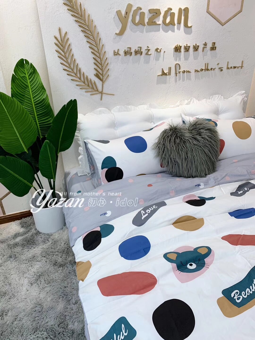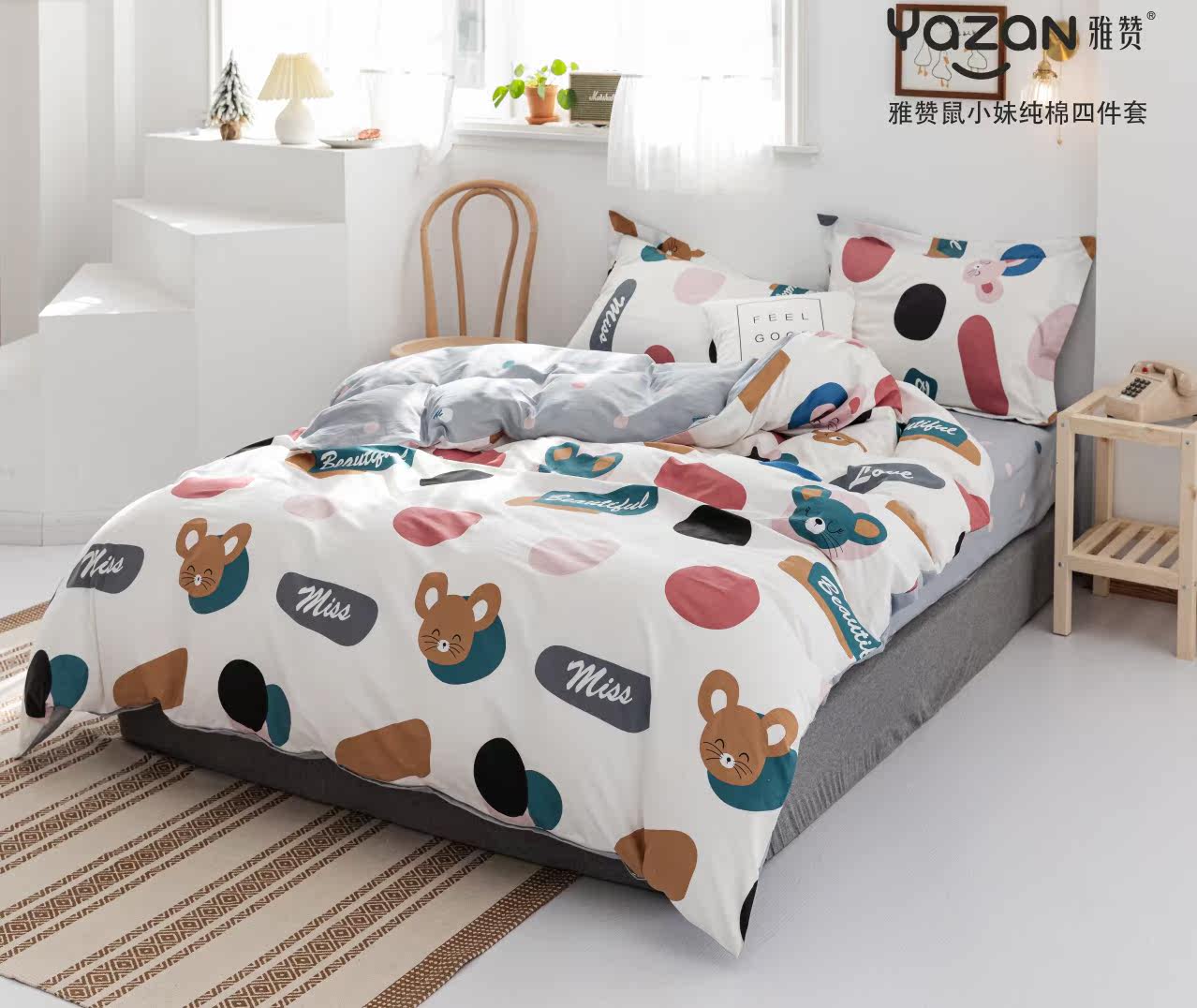 2021 new cotton four-piece spring and summer bedding cartoon printing bed sheet quilt cover pillowcase the same style in shopping malls - Taobao
