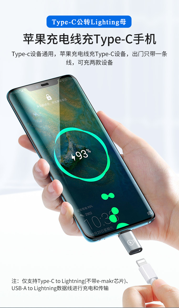 typec turn lighting male adapter applies Huawei data line to turn Apple mobile phone charge transfer 5V