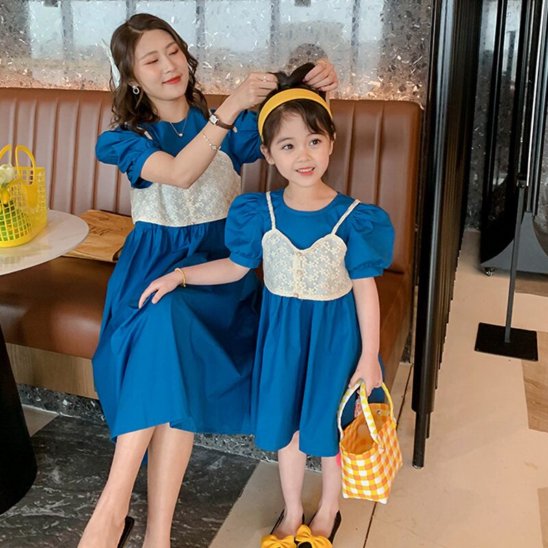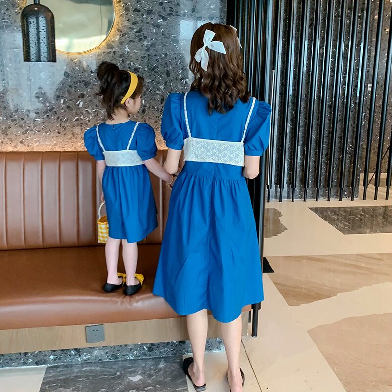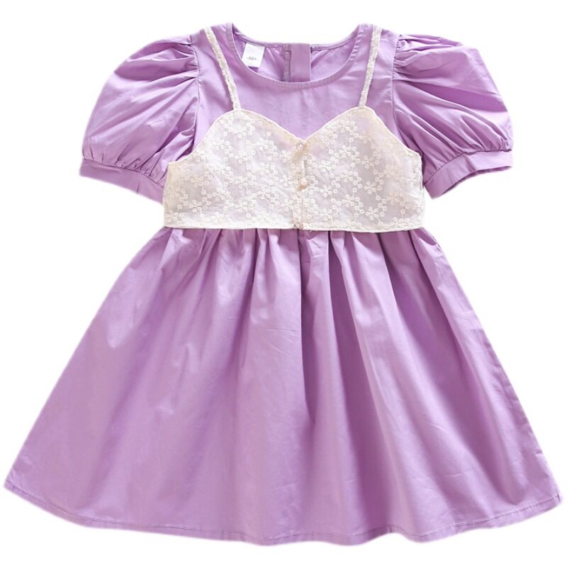 Parents and daughters Summer fragrance dress 2022 new bubble sleeve air purple sweet and cute princess skirt