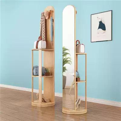 Full-length mirror hanger integrated simple full-body floor mirror home bedroom rotating full-length mirror full solid wood stereo mirror
