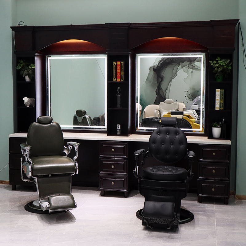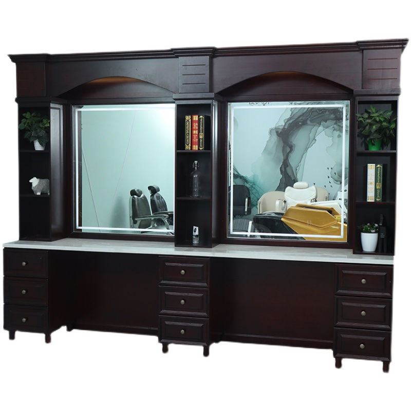 High-end custom barbershop hair salon Retro Mirror Cabinet integrated hair salon special hair cutting perm solid wood mirror