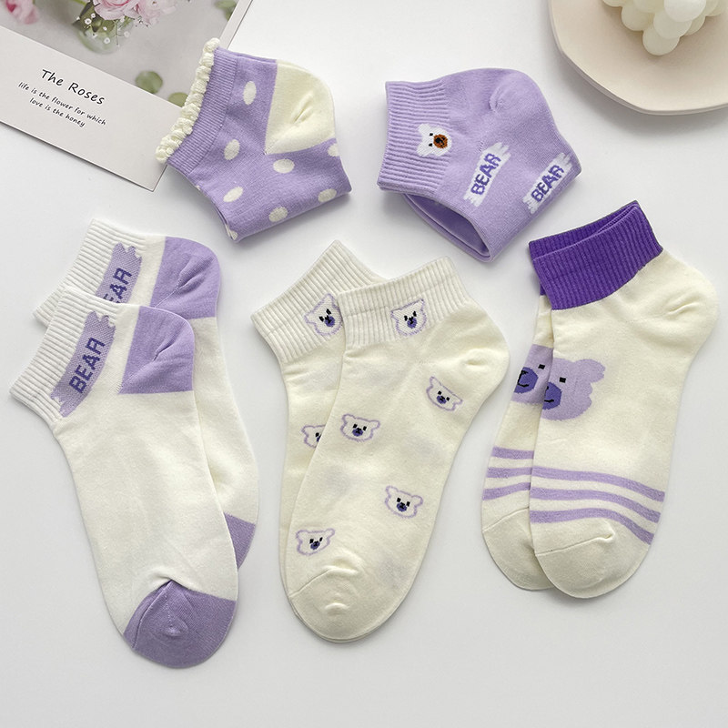 Small Bear Socks Children Spring Summer Purple Light Mouth Short Socks ins Chauffins Cute Day Department Low Bunch Pure Cotton Invisible Socks Korean version