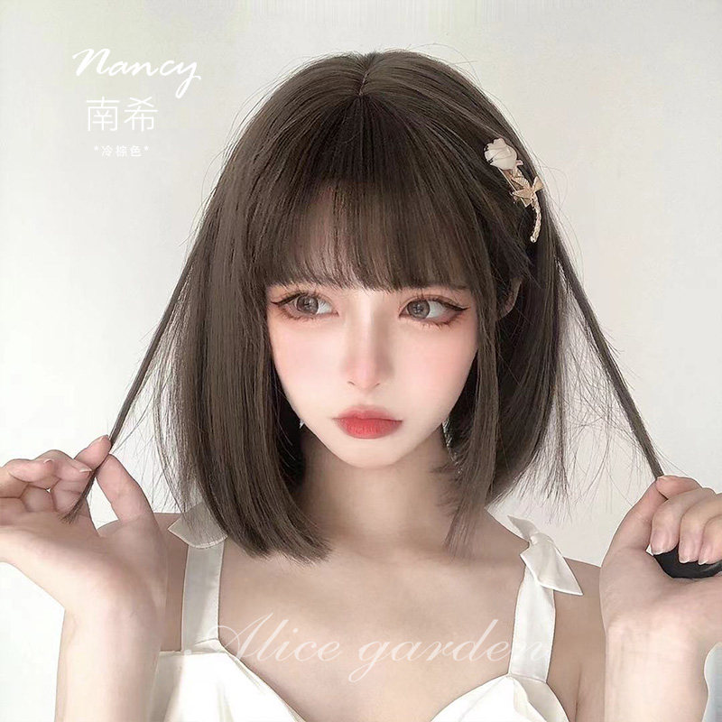 Wig short hair female Net red short hair daily bobo natural bangs full head cover cute lolita realistic wig female