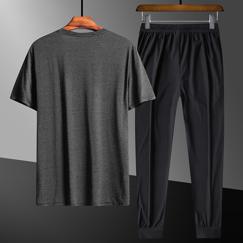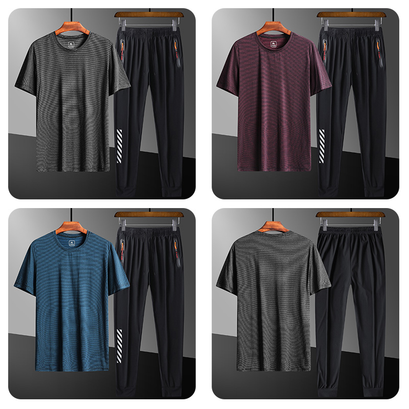 Quick-drying men's running suit short-sleeved shorts round neck T-shirt breathable loose fitness outdoor sports suit in large size