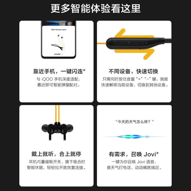 vivo iQOO wireless sports headphones in ear style double ear running hanging neck style original Bluetooth headphones 3 neck hanging electric race iqoo8 iqoo8 neo5 x60x70 x60x70 9pro
