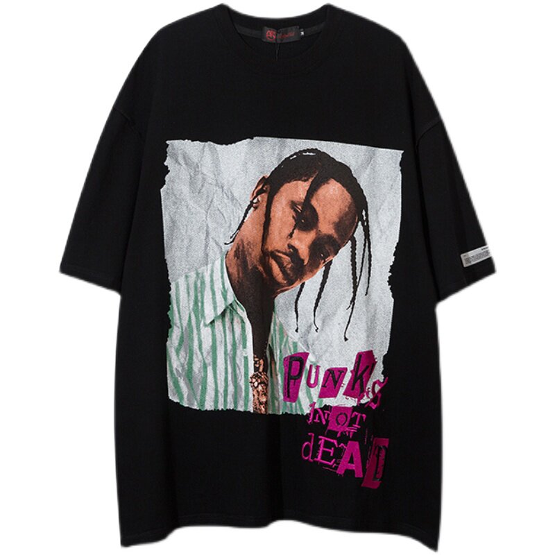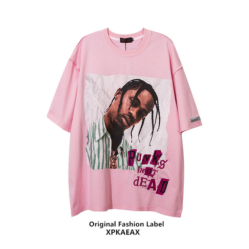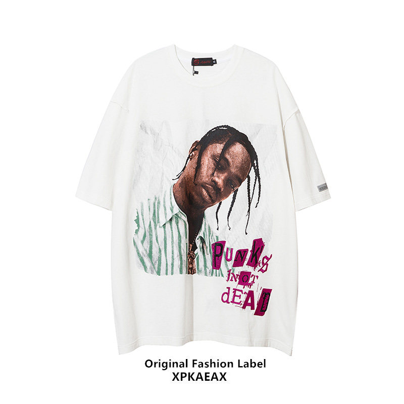 XPKAEAX Original Tide Card Portrait Printed T-shirt Male Loose Large Size Yard Pure Cotton European And European Street Hiphop Short Sleeve Summer