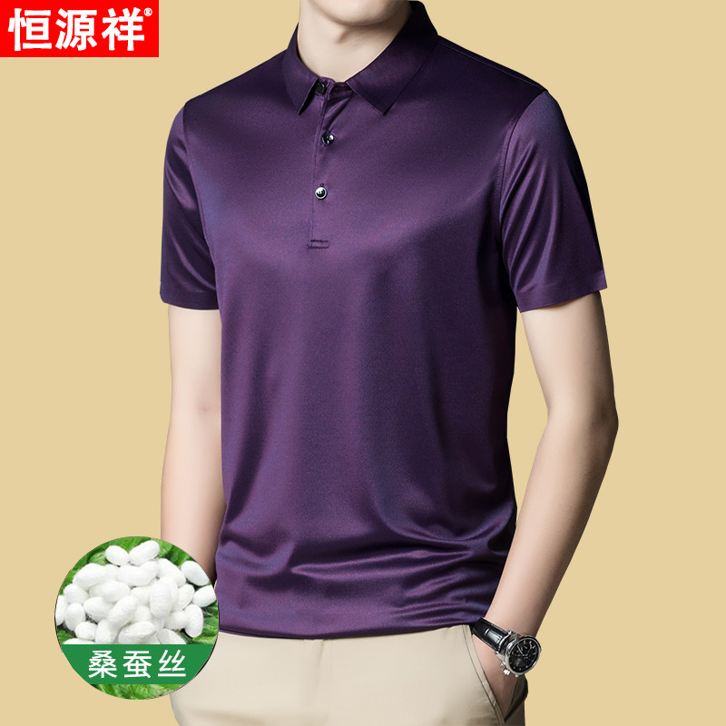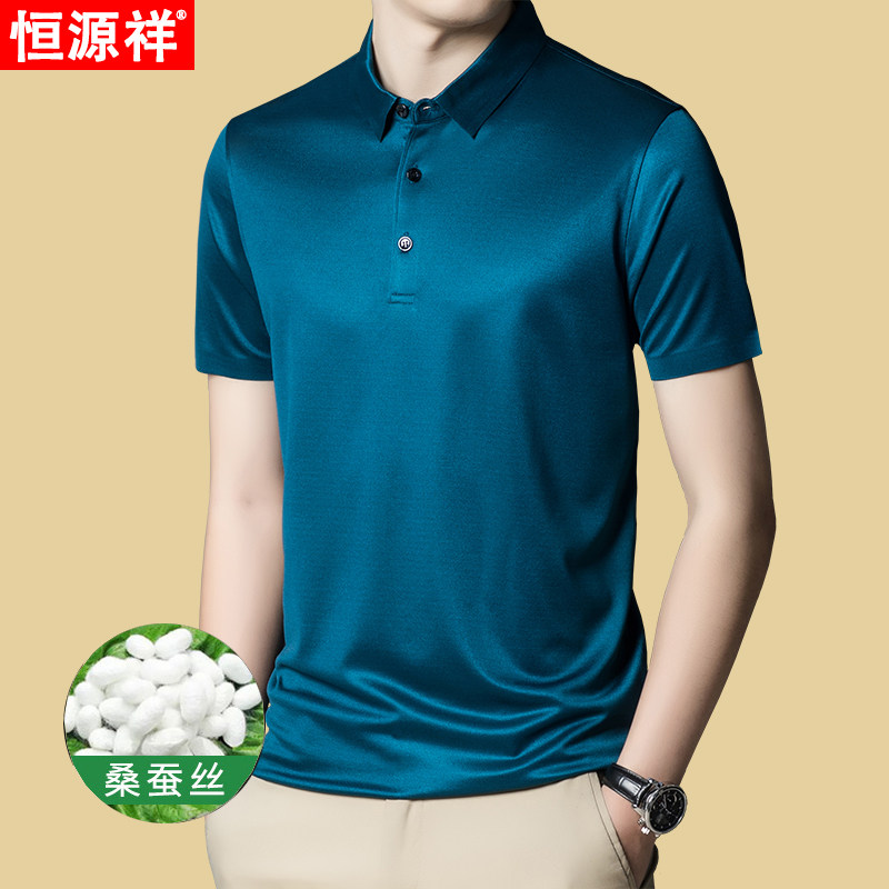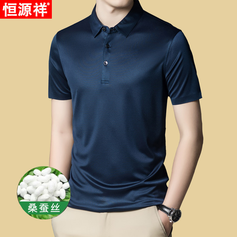 Hengyuanxiang short-sleeved T-shirt men's 2023 summer new mulberry silk solid color lapel casual middle-aged men's polo shirt