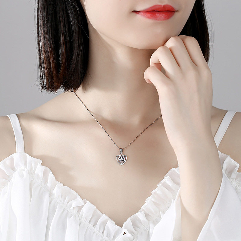 Chow Tai Fook Necklace for Women PT950 Platinum Clavicle Chain for Women 18K white gold Mossang Diamond Pendant Set Chain for Women