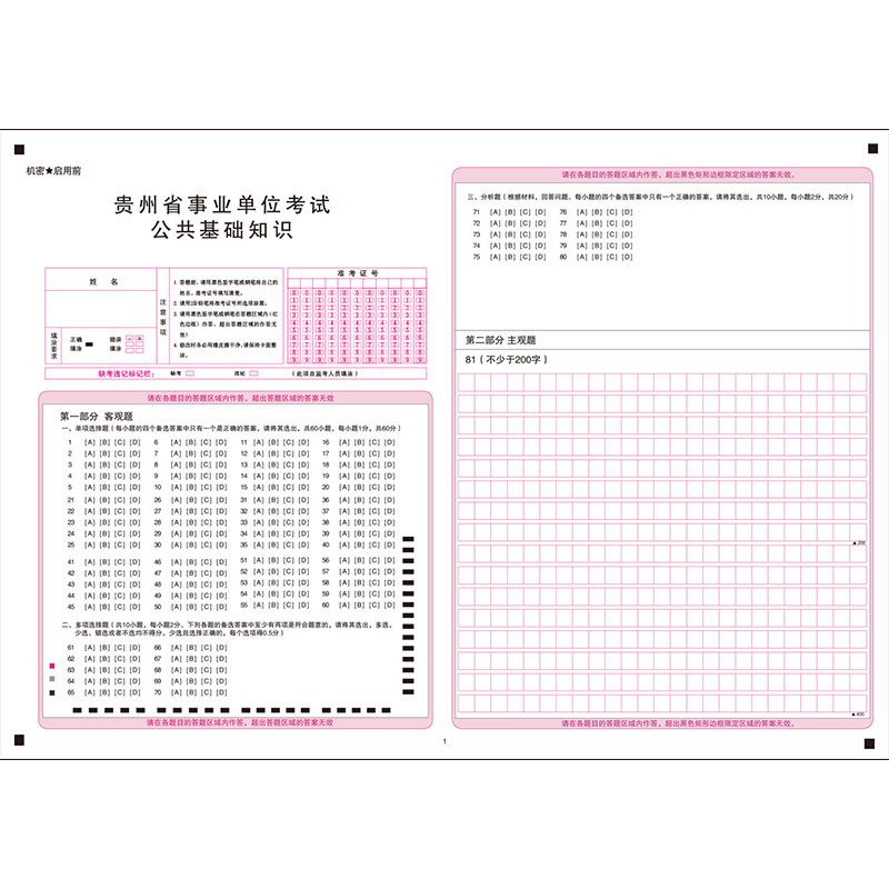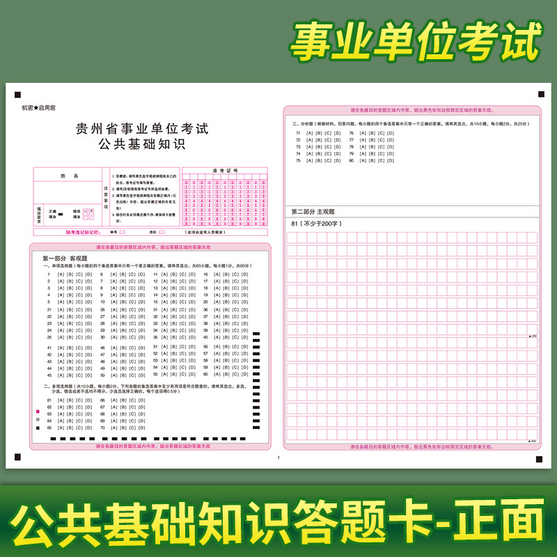 Spot Guizhou Provincial Public Institution Recruitment Exam Public Basic Knowledge Answer Card Answer Sheet Comparable to Exam Paper Can Customize Various Answer Cards