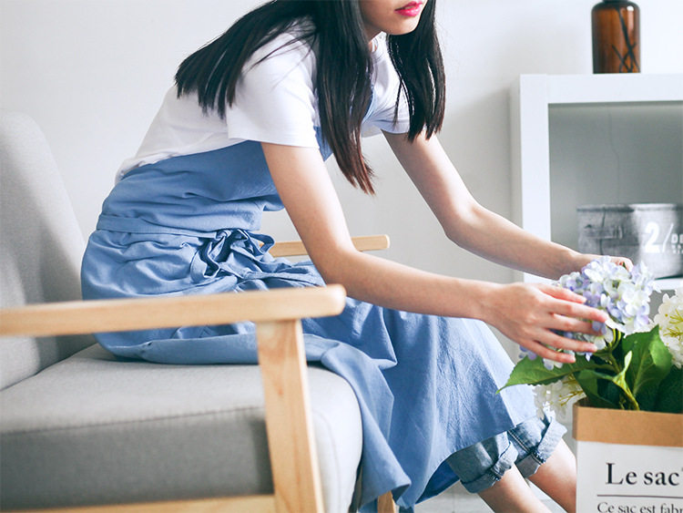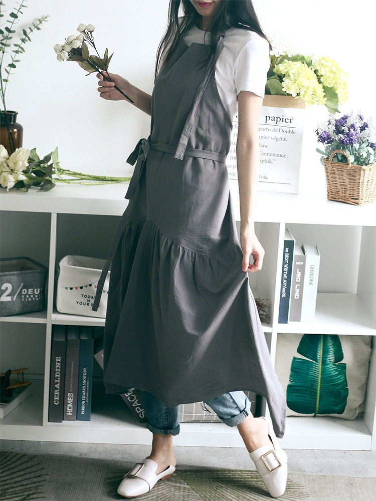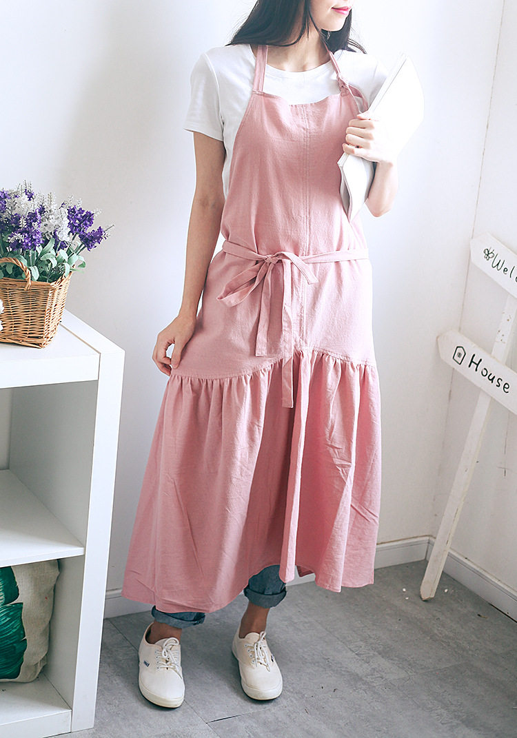 The sleeveless apron is a little less
