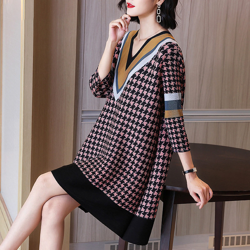Three Homes Draped Ocean Dress With Loose Size Women's Dress 2022 Fall New Moms Dress Temperament and Aging Shade