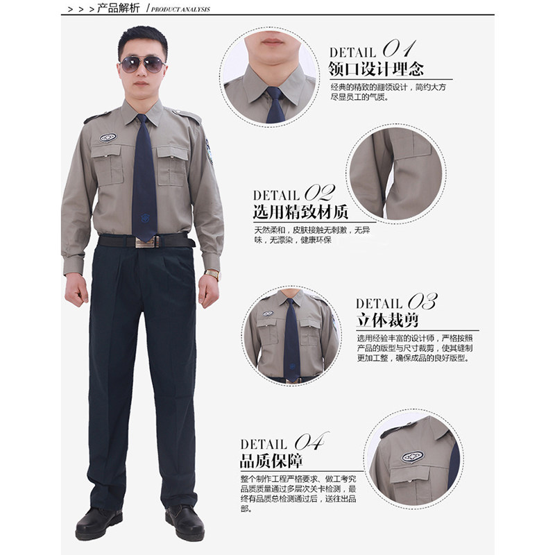 Security work clothes summer long and short-sleeved shirt top cement gray security property dark green summer pants duty service