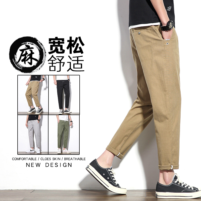 Linen Pants Men's Summer Thin men's casual pants Straight tube Loose Hemp Cotton 90% Pants Cards Its Color Long Pants New