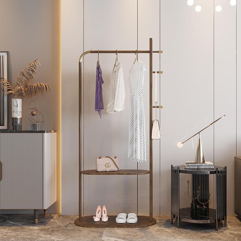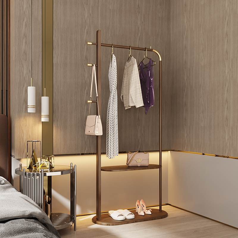 U Home | solid wood hanging hanger sub-floor bedroom New Chinese light lavish home American medieval cloakhat shelf