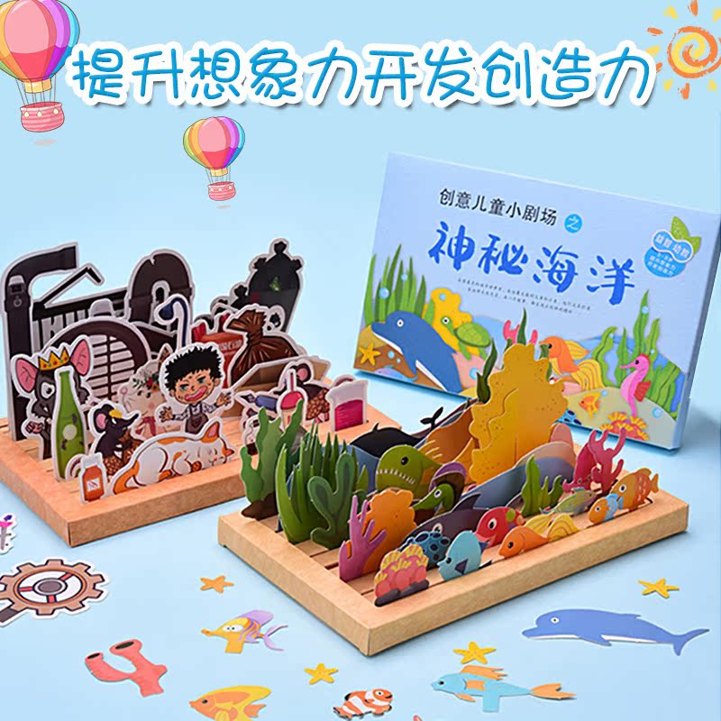 Story Box Handmade Kindergarten Children Diy Small Theater Box Solid Illustrations Making Material Puzzle