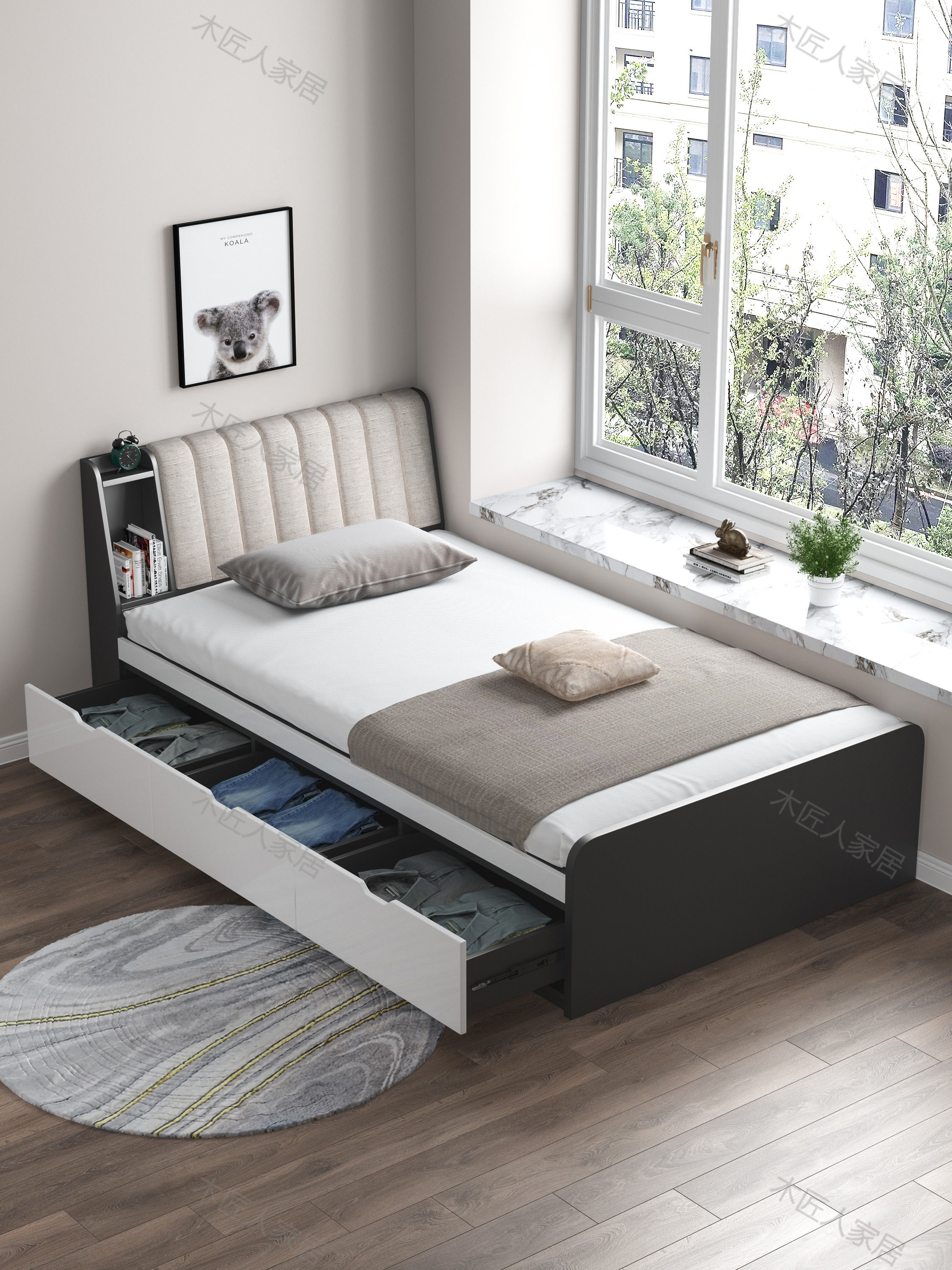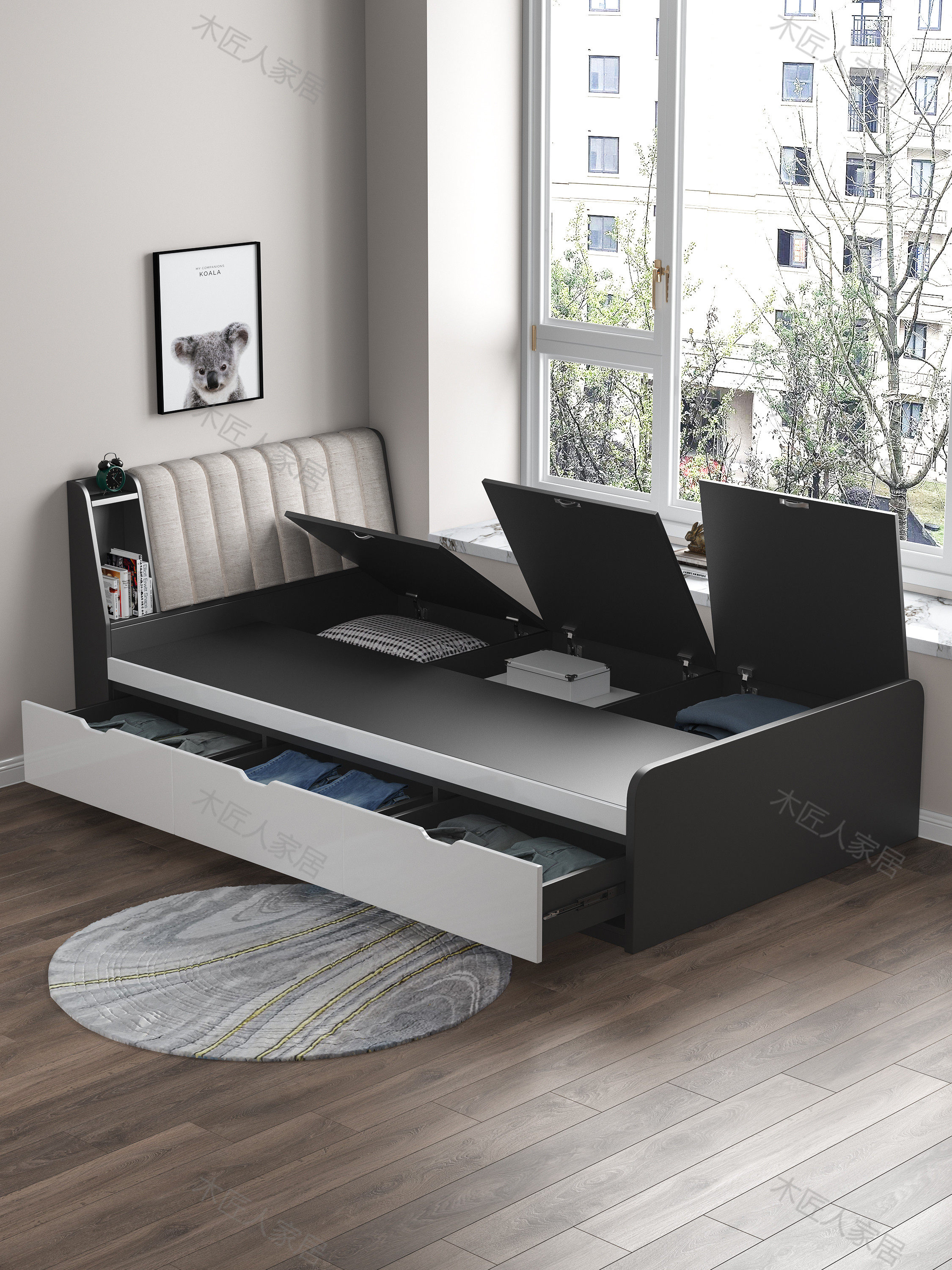 Single storage bed (iron gray) single storage bed 7 cm mattress (iron gray) single storage bed (oak color) single storage bed 7 cm mattress (oak color)