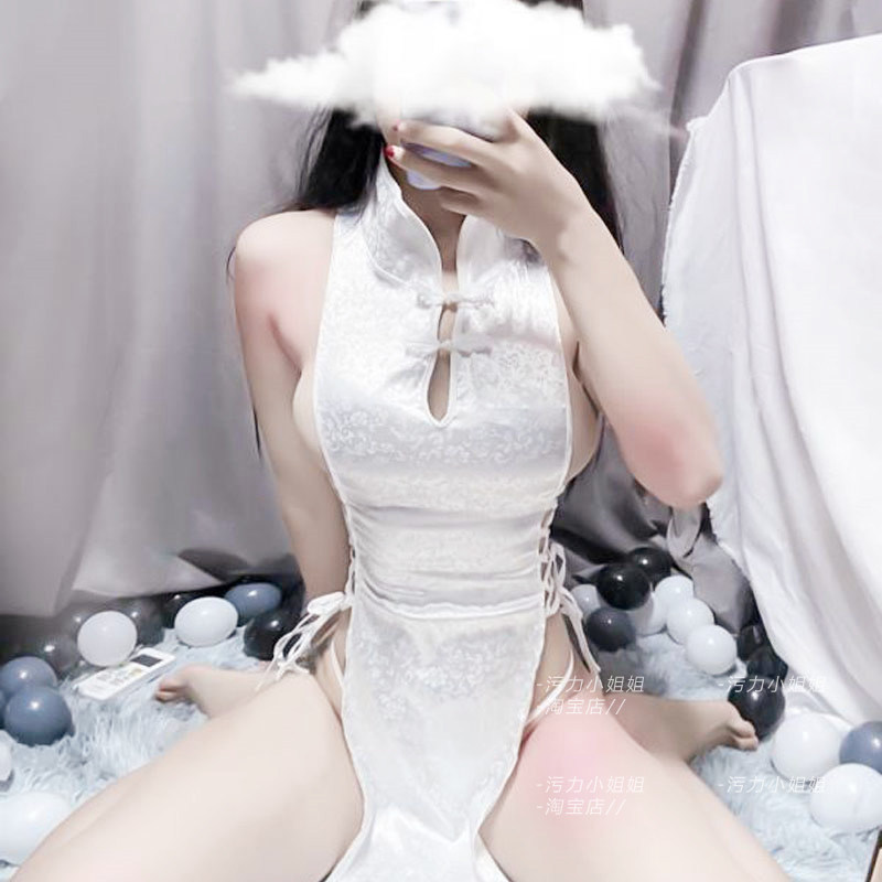 Warlord wife hollowed-out disc buckle high open fork Sexy sleeping dress Temptation Sleeping Dress Jacquard Qipao
